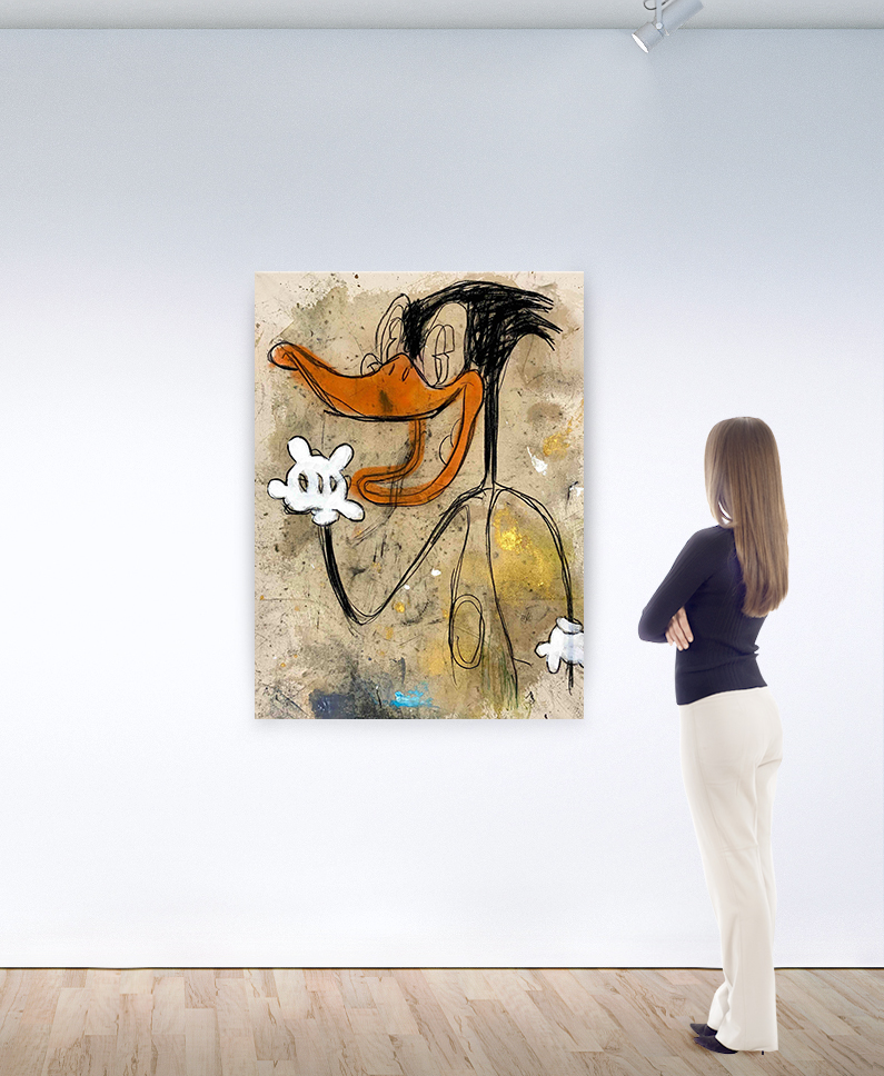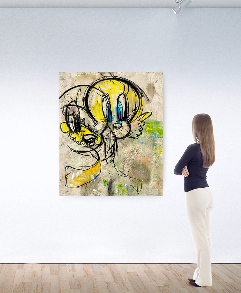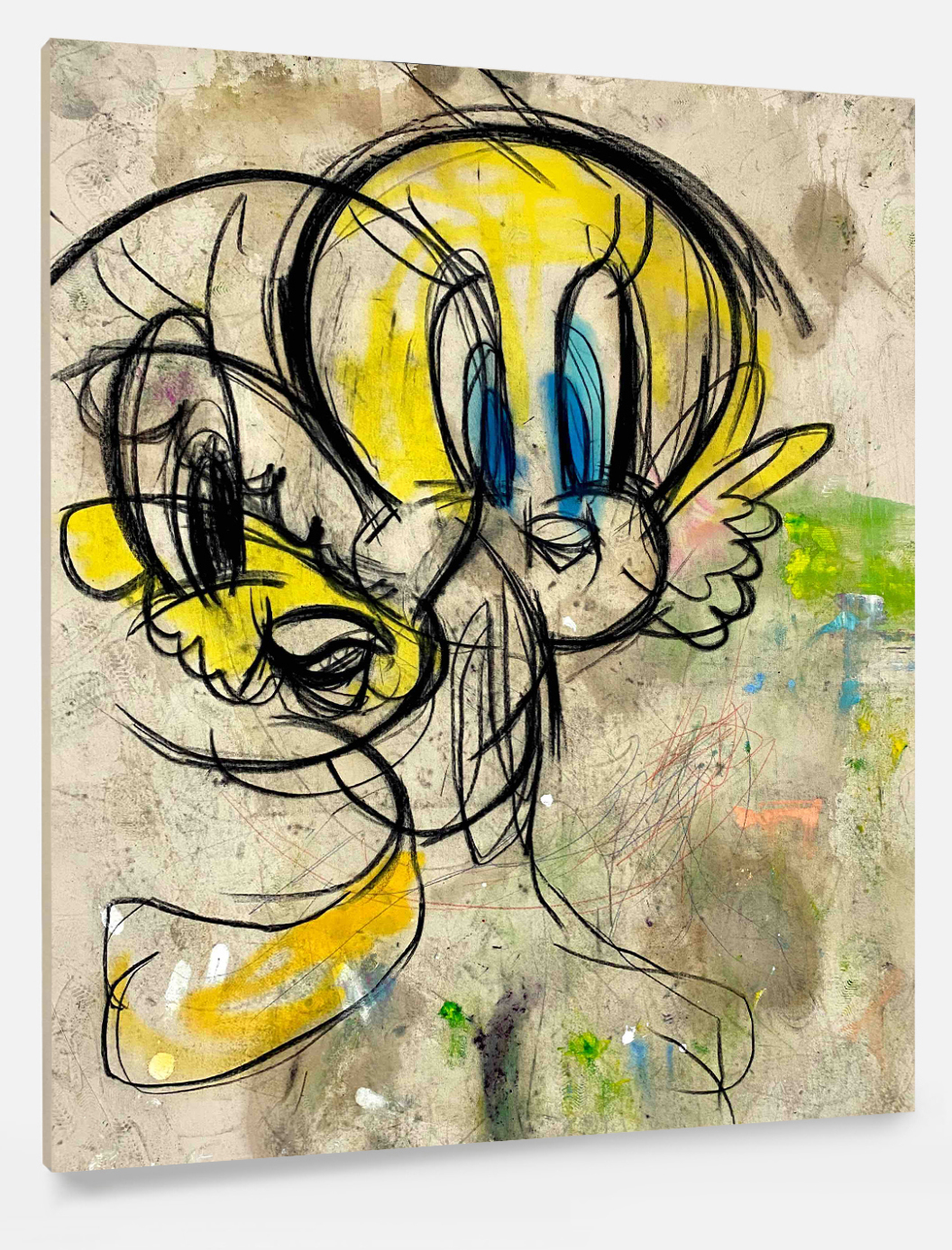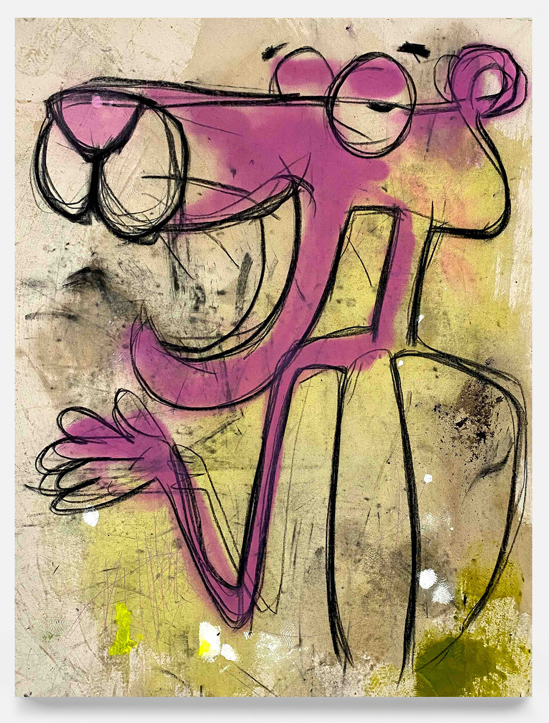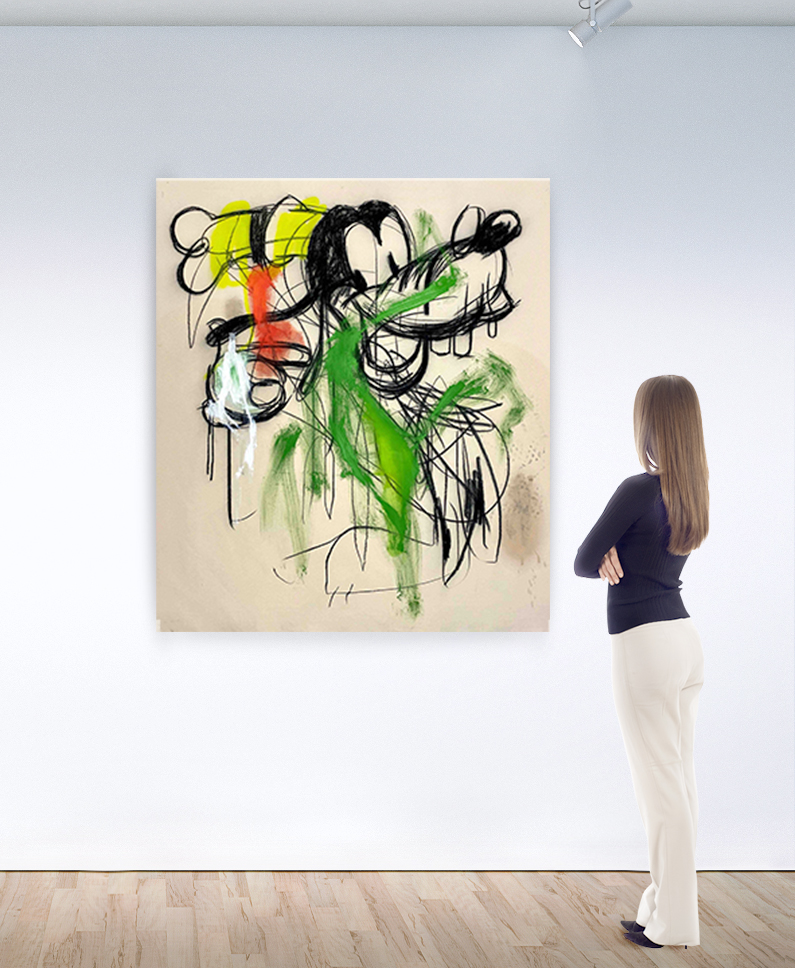 Passionate about animation and drawing, he began to study animation at Surrey Institute of Art and Design. He soon realised that the traditional manner of creating cartoons was shifting towards the digital medium, and decided to study fine arts instead. The result is unparalleled: with his cartoon characters that resemble sketches of cartoon drawings, George Morton-Clark provokes a range of emotions and suddenly thrusts us back into childhood. Here, Garfield, Pluto, and the Pink Panther are depicted with the same features as in the cartoons, but they have a new vitality.