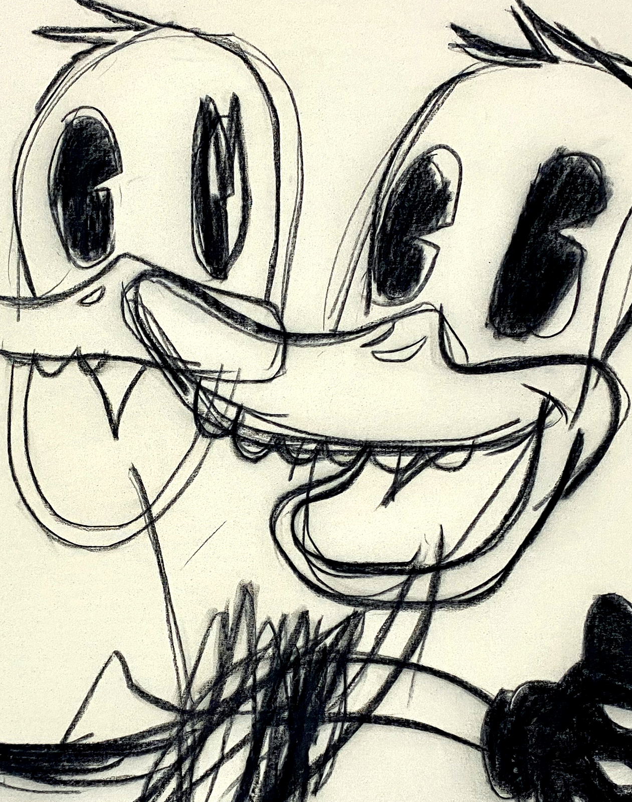 The two sculptures All Good and Make Believe and Last Orders are concrete models of Donald Duck and Mickey Mouse. I chose these two characters for their iconic imagery.