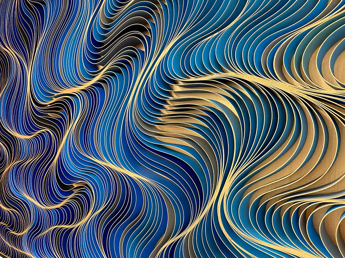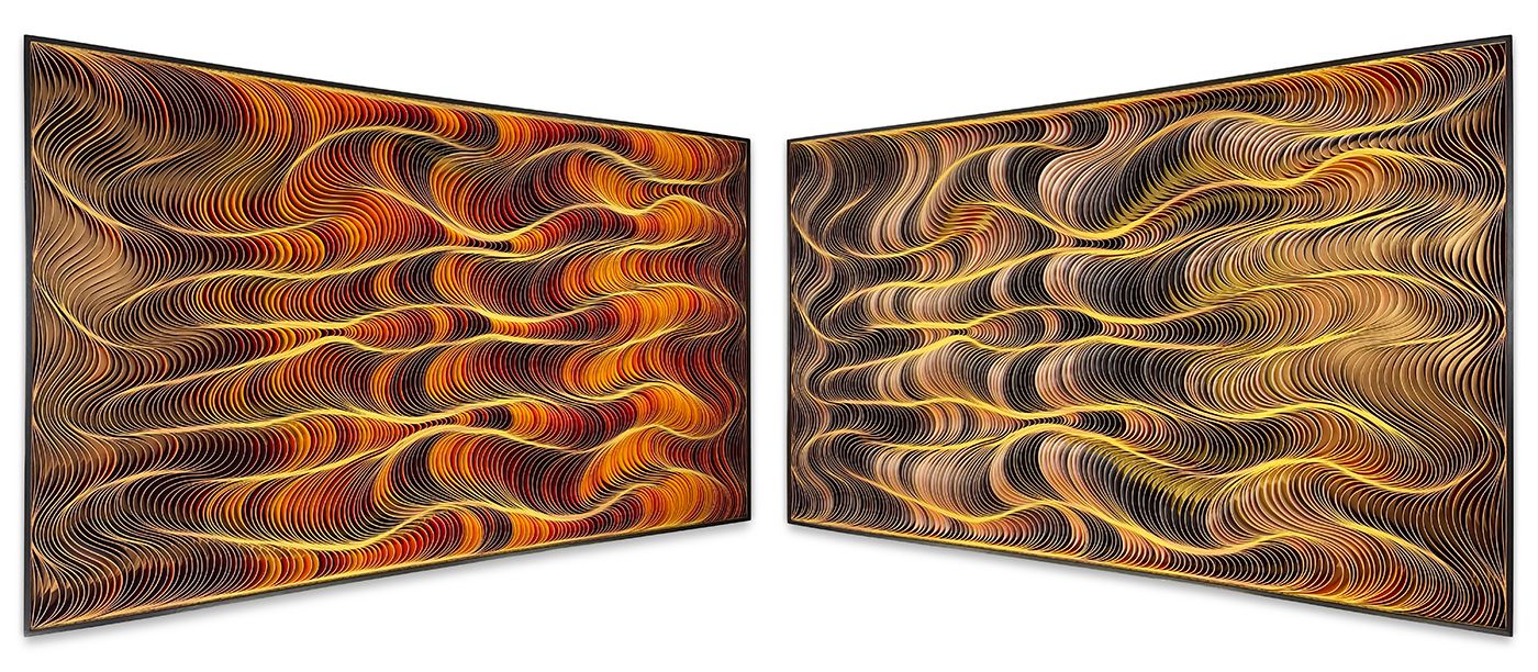 Completely complementary, the duo acts like both hemispheres of the brain, and together they work to create pieces halfway between paintings and sculptures. The rich gradients featured in their works act as epitomes of the hues present in nature, channelling the very essence of the beauty around us.