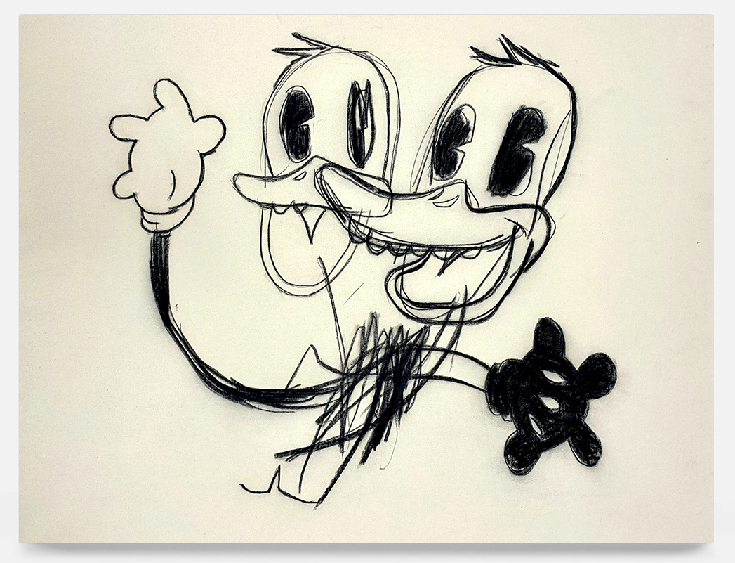 For his first solo exhibition in Paris, British artist George Morton-Clark unveils a series of new works. They show the artist’s favourite characters, as well as his unmistakeable style: Donald Duck, Mickey Mouse, and Bart Simpson seem to be drafts, but a closer study reveals careful work on the lines, movement and the dissolution of the character. Visitors will also be able to admire a selection of sculptures showing the artist’s exploration of a new medium.