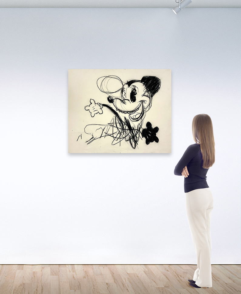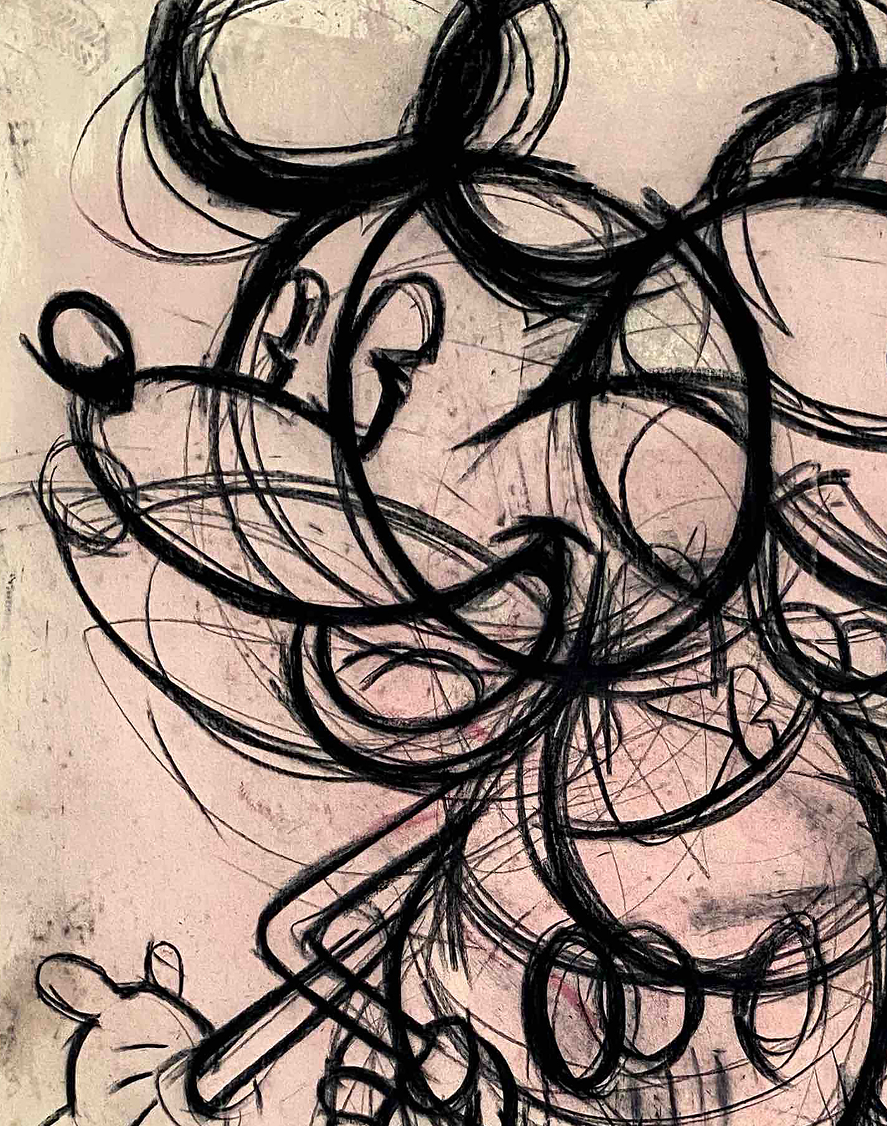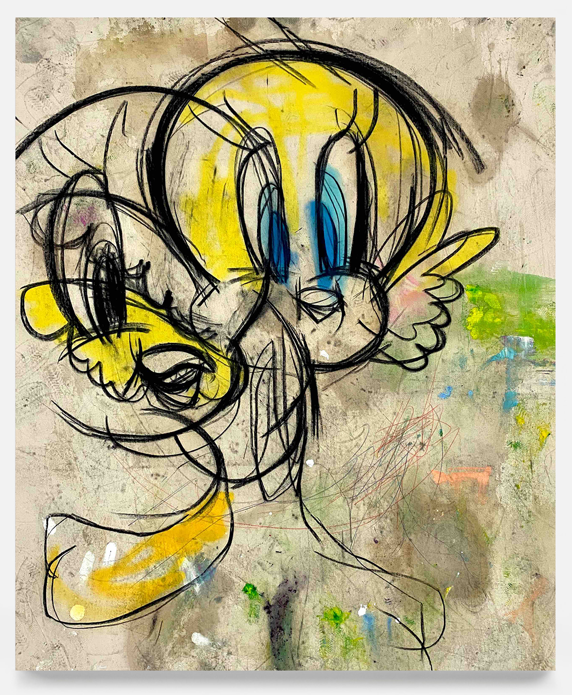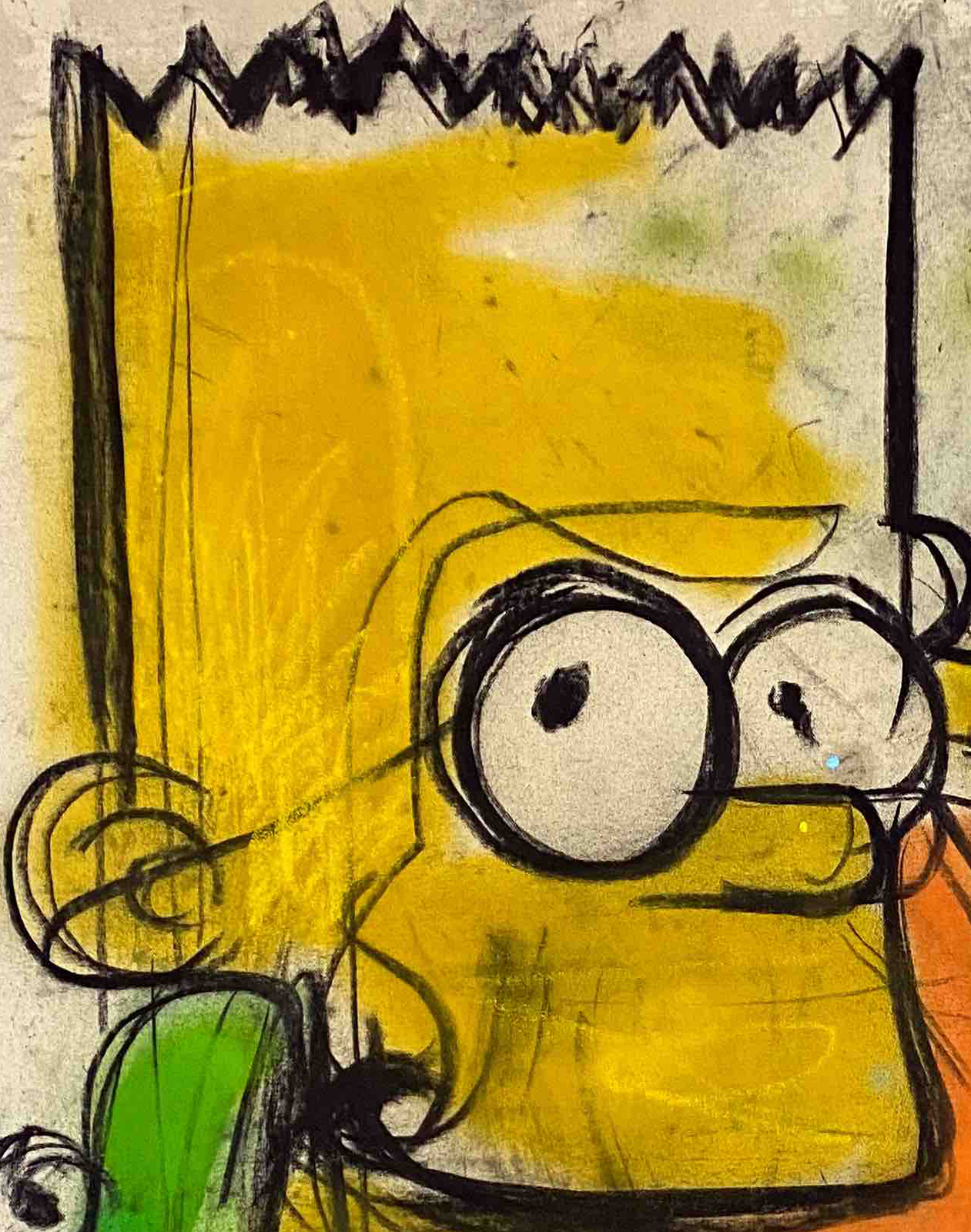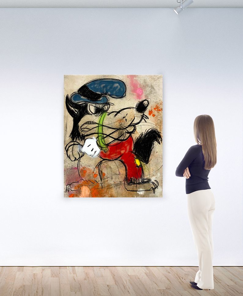 Passionate about animation and drawing, he began to study animation at Surrey Institute of Art and Design. He soon realised that the traditional manner of creating cartoons was shifting towards the digital medium, and decided to study fine arts instead. The result is unparalleled: with his cartoon characters that resemble sketches of cartoon drawings, George Morton-Clark provokes a range of emotions and suddenly thrusts us back into childhood. Here, Garfield, Pluto, and the Pink Panther are depicted with the same features as in the cartoons, but they have a new vitality.
