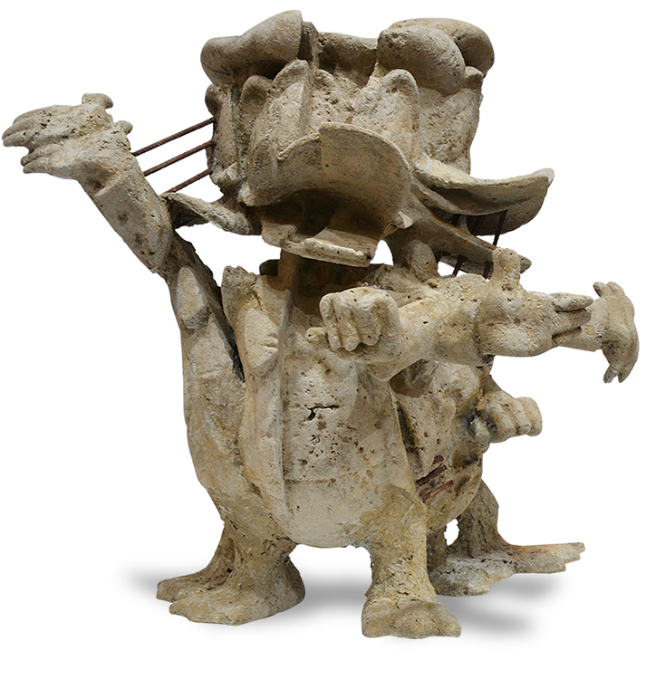 The two sculptures All Good and Make Believe and Last Orders are concrete models of Donald Duck and Mickey Mouse. I chose these two characters for their iconic imagery.