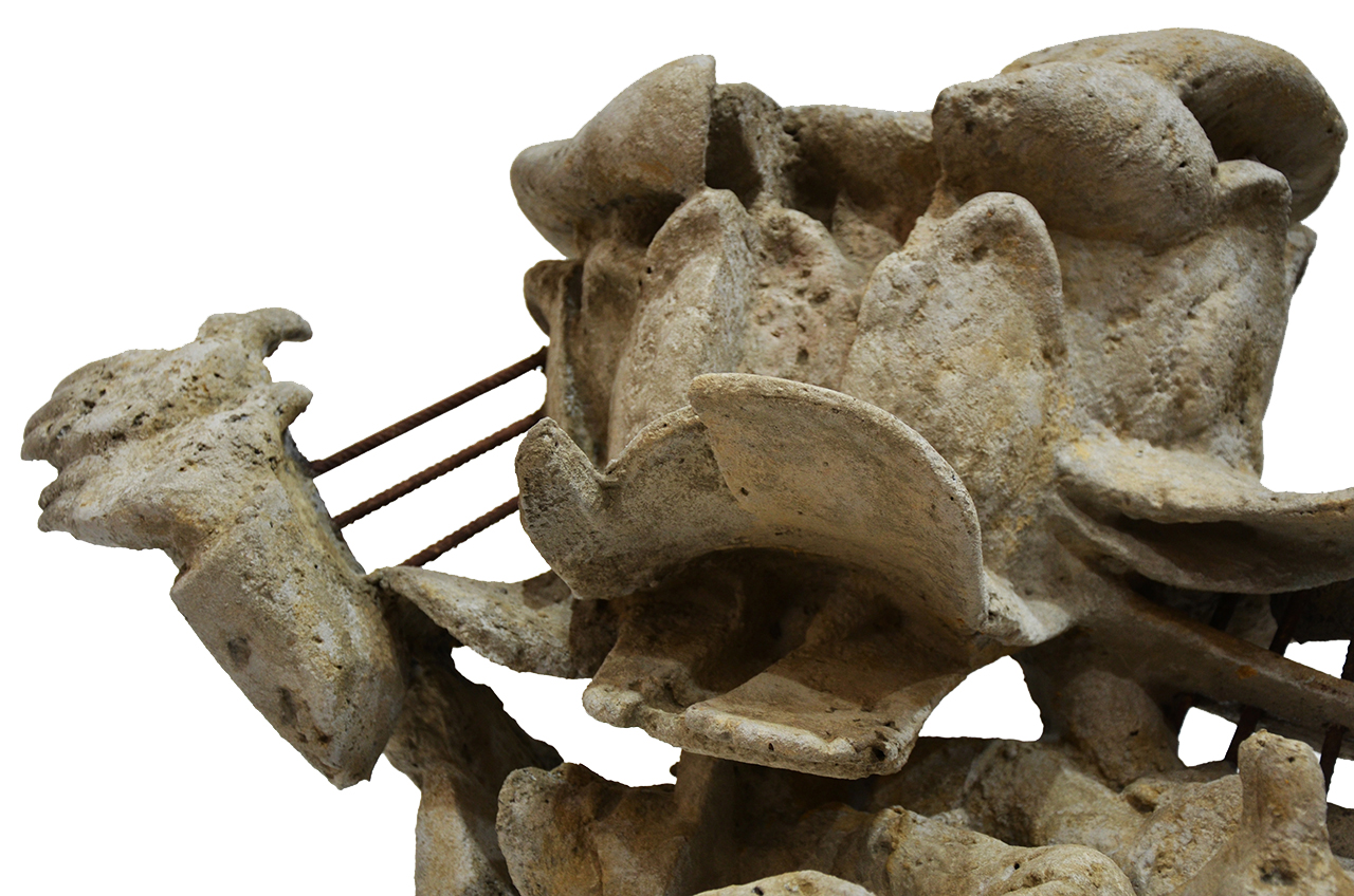 When I was traveling around Greece as a 19 year-old I noticed that many of the concrete buildings looked like they were unfinished and you could still see the iron rods sticking out from the roof tops. I later found out this was for tax purposes. I thought at the time that in some way this would be a good concept to use in a sculpture. The concrete and iron rods have an architectural relationship with each other.